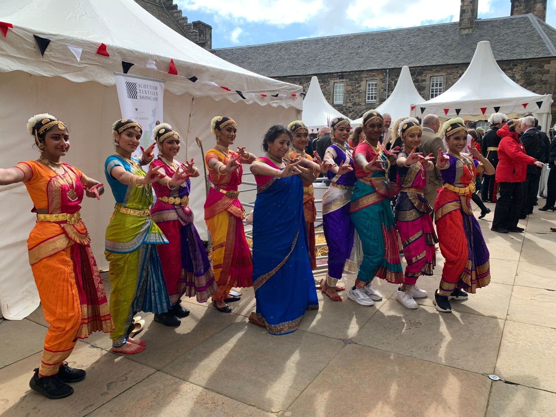 "The Scotsman praised the dancers impressive technical skill, including intricate footwork, jumps, and balances. The review noted that the performance gained energy as it progressed, with lighting matching the vibrancy of the costumes and the introduction of kilts alongside traditional Indian dance attire.